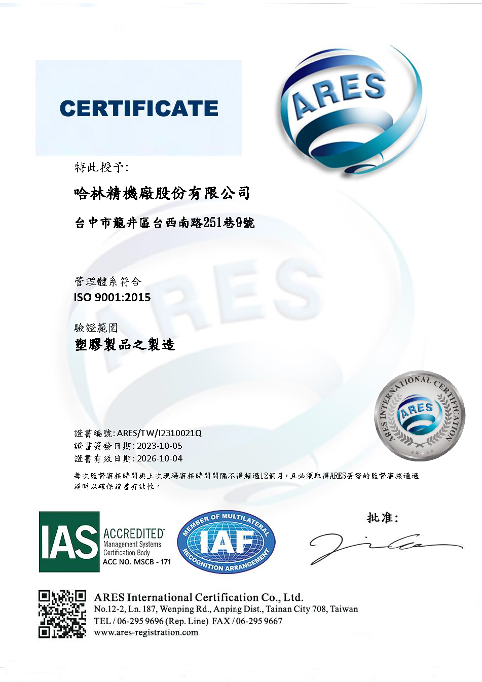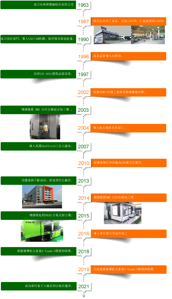 在有「工業之母」之稱的模具產業,哈林精機已經屹立超過半個世紀,自1963年成立以來,以優異的模具開發能力,以及與客戶共存共榮的誠信服務,贏得全球客戶的訂單與信賴。以台灣為營運總部,行銷據點遍布全球七大洲,從專業生產塑膠模具發展到近年來成功開發航太零組件加工。再轉型精密模具射出,進而發展自我產品。哈林精機生產的高品質模具就像客戶的「金雞母」,為全球客戶製造了無數好產品、創造成就與利潤。