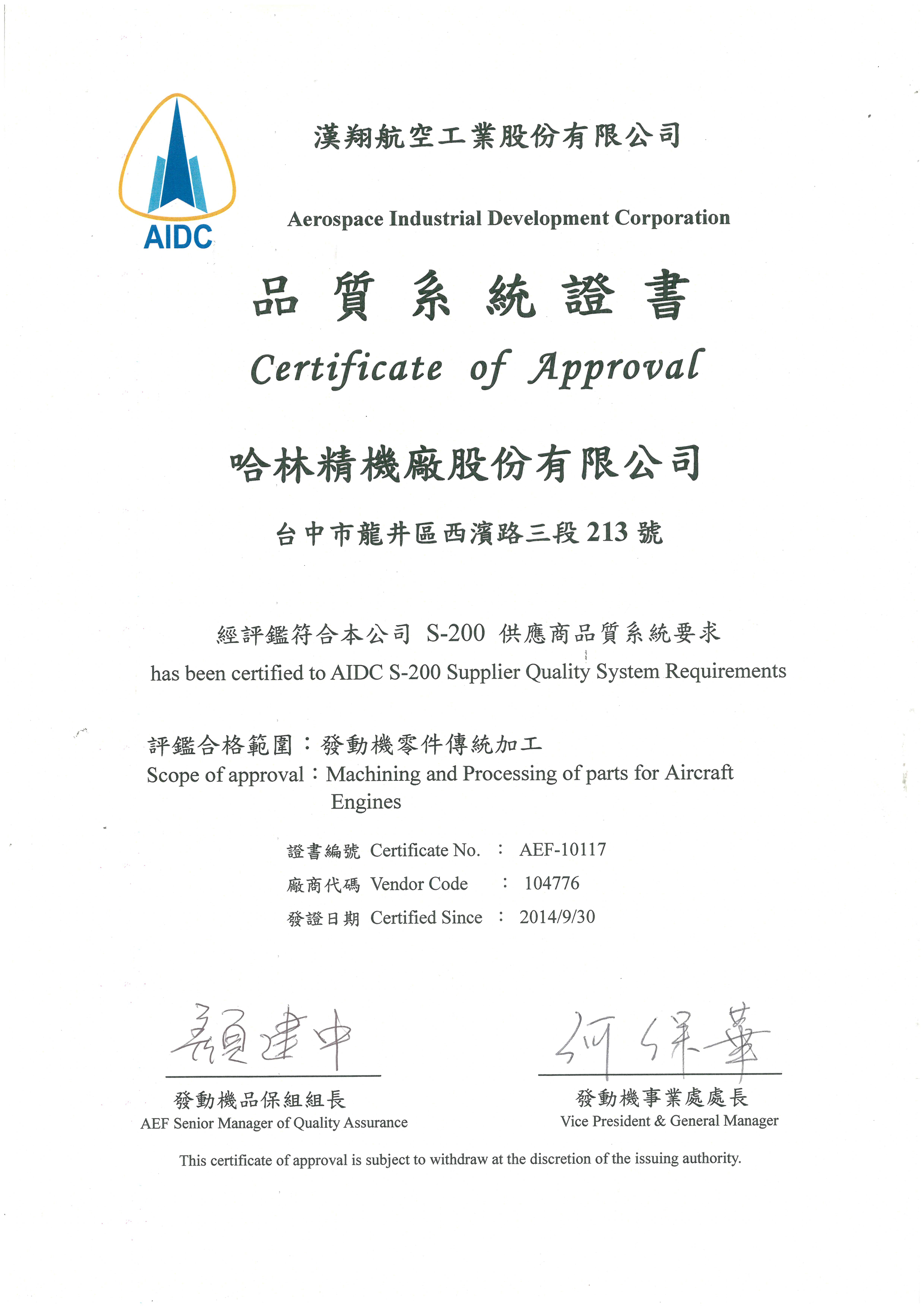 品質證書
